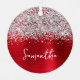 Girly faux silver glitter and bright red brushed metal foil digital art that will print like a photo on your holiday ornament.