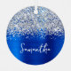 Girly faux silver glitter and royal blue brushed metal foil digital art that will print like a photo on your holiday ornament.