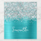 Glittery Silver Turquoise Blue Glam Script Name Wine Label