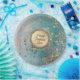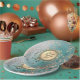 Glittery whimsical stardust on an ombre blue teal backdrop with an elegant gold circle with gold flourish where you can personalize your event creating dreamy glam vibes.