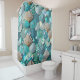 Glittery Teal Mermaid Tail Scales Print And Shells Shower Curtain