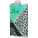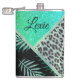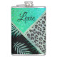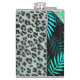 Glittery Teal Tropical Ferns Leopard Personalized Hip Flask