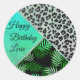 Glittery Teal Tropical Leopard Print Birthda Classic Round Sticker