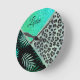 A collage of shimmery teal leopard print design joined with a vibrant teal green ombre glittery pattern where you can customize it along with tropical ferns creating trendy glam vibes.