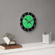 Wall clock with a modern design featuring stars scattered over a stylised "sequin look" pattern background in shades of green, edged in black..Can be used as a background for your own text, images and ideas. Other style options available. Please note this is a printed digital art image, it does not shine or contain real glitter or sequins.