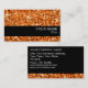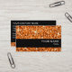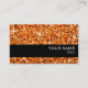 Business card with a modern design featuring stars scattered over a stylised "sequin look" pattern background in shades of orange and white text on a black background Please note this is a printed digital art image, it does not shine or contain real glitter or sequins.