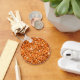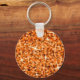 Keychain with a modern printed design featuring stars scattered over a stylised "sequin look" pattern background in shades of orange. Can be used as a background for your own text, images and ideas. Please note this is a printed digital art image, it does not shine or contain real glitter or sequins.