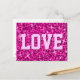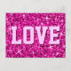 Postcard with a modern design featuring stars scattered over a stylised "sequin look" pattern background and 'LOVE' in shades of pink. Can be used as a background for your own text, images and ideas. Please note this is a printed digital art image, it does not shine or contain real glitter or sequins.