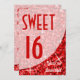 Invitation with a modern design featuring stars scattered over a stylised "sequin look" curved shape in shades of red with 'Sweet 16' 'you're invited' written in red and white. Can be used as a background for your own text, images and ideas. The text can easily be changed using the template provided or click the 'Customise It' button to make further alterations. Please note this is a printed digital art image, it does not shine or contain real glitter or sequins.