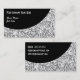 Business card template with a modern design featuring stars scattered over a stylised "sequin look" curved shape in shades of silver grey set against a black background with white text. Can be used as a background for your own text, images and ideas. The text can easily be changed using the template provided or click the 'Customise It' button to make further alterations. Please note this is a printed digital art image, it does not shine or contain real glitter or sequins.