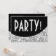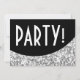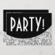Invitation with a modern design featuring stars scattered over a stylised "sequin look" curved shape in shades of silver grey set against a black background with 'Party!' written in white. Can be used as a background for your own text, images and ideas. The text can easily be changed using the template provided or click the 'Customise It' button to make further alterations. Please note this is a printed digital art image, it does not shine or contain real glitter or sequins.