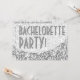 Invitation with a modern design featuring stars scattered over a stylised "sequin look" curved shape and 'Bachelorette Party!' in shades of silver grey. Can be used as a background for your own text, images and ideas. The text can easily be changed using the template provided or click the 'Customise It' button to make further alterations. Please note this is a printed digital art image, it does not shine or contain real glitter or sequins.