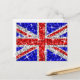 Fly the UK flag with this fun Union Jack design featuring stars scattered over a stylised "sequin look" pattern background. Postcard with a red, white, silver grey and blue customisable design for you to personalise with your own text, pictures and ideas. Please note this is a printed digital art image. The product does not shine or contain real glitter or sequins.