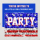 Stars and stripes design inspired by shining sequins. Invitation with a red, white, silver grey and blue customisable design for you to personalise with your own text, pictures and ideas. Image created using digital techniques by Jess Perry. Does not contain real glitter or sequins.