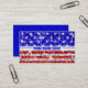Business card template with a stars and stripes design featuring stars scattered over a stylised "sequin look" pattern background. A red, white, silver grey and blue customisable design for you to personalise with your own text, pictures and ideas. Please note this is a printed digital art image, it does not shine or contain real glitter or sequins.