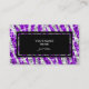Business card with a modern printed design featuring stars scattered over a stylised "sequin look" zebra stripe pattern background. .A customisable design in shades of purple and silver grey for you to personalise with your own text, pictures and ideas. Please note this is a printed digital art image, it does not shine or contain real glitter or sequins.