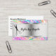 Classy and glitzy Hair and beauty theme business cards designed with hairstylist cutting shears graphic, a colourful holographic bling background and your contact details organised on the flip side. Created for a Hair Stylist, Hairdresser, or independant Hairstylist.