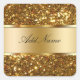 Glitzy monogram stickers with stylish simulated gold glitter pattern printed on the label and gold coloured monogram emblem you can personalise with any name, initials, or message. Best monogram labels for thank yous, parties, gift labels, or name tags.