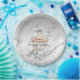 Glitzy Silver White Cupcake Bow Birthday Paper Plate