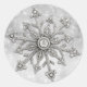 Elegant Winter envelope or favour stickers done in an silver tone and white sparkly background, with graphic artwork of a big silver tone and diamond snowflake jewel. Very pretty way to finish off your winter wedding invitations or holiday cards.