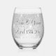 Glitzy wedding party sparkly silver glitter custom Stemless Wine Glass. Perfect for alcoholic drinks and more. Classy drinking glass personalised with names of bride and groom. Unique drinking glasses. Change the quantity to get the cheap bulk discount price.