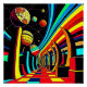 A.I. created psychedelic geometric, surreal abstract composition of globes, crescents, cubes, planets, orbs, spheres, and swirls of varying shapes and colours in an arrangement which pleased the senses of the artist.