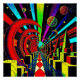 A.I. created psychedelic geometric, surreal abstract composition of globes, crescents, cubes, planets, orbs, spheres, and swirls of varying shapes and colours in an arrangement which pleased the senses of the artist.