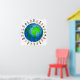 Cute illustration of a group of happy and diverse children from various countries of the world holding hands around the globe. Image available on various gifts and products.