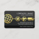 A grey shades layer features a creative gold global line linked to the various types of logistics i.e. the gold ship representing sea transport, the plane for air cargo, the truck for land and the computer circuit linkage layer just below. The forward movement of the gold truck indicates your leadership in the global arena, your international standard. Your prestigious name and job title are at the top with the contact details and a slogan caption option you can change, at the base.