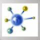 Illustration of a conceptual molecule design with a world globe at the centre. Can easily represent the internet and global networking. Easily customise and choose your own background colour. Image available on various gifts and products.