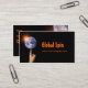 If the world is your oyster, this business card could be just what you are looking for.  A dramatic graphic of the world balancing on a finger on a classical black background with complimenting orange text.  The front is in the horizonal perspective, and includes company name and web address.  The back of the card is in the vertical, with full business contact details.  This business card is fully customisable to your needs.