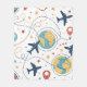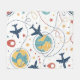Vibrant seamless pattern blanket featuring aeroplanes, globes, flight paths, stars, and travel-inspired icons in a playful aviation style. Ideal for travelers, aviation enthusiasts, frequent flyers, and anyone who loves global adventure aesthetics.