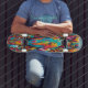 This design showcases the joy, love, and harmony of the global skateboarding community, with a bright and joyful palette that emphasises global unity. Vibrant representations of skateboarders, hearts, and symbols of peace connect cultures and continents, highlighting the diversity and collective pursuit within the skate community.