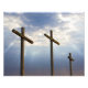 Three old, weathered, wooden crosses stands tall against a glorious sky with shafts of sunlight shining down from the clouds. This high quality print is available with numerous framing/finishing options.