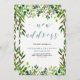 This trendy change of address card features pretty watercolor leaves and berries in several shades of green and teal, and matching modern typography.