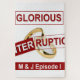 The Glorious Interruption: A Golden Beginning image features a clean, white background. It includes several text elements and a central graphic, creating a minimalist yet impactful composition. At the top, the word "GLORIOUS" is enclosed in a thin red rectangular border. The word "INTERRUPTION" is placed diagonally across the centre, also framed by a red border, overlapping a graphic of two golden rings. Below the rings, the text "M & J Episode I" is similarly bordered in red, adding to the overall design.