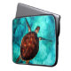 Glorious sea turtle in vivid colours of brown against a crystal clear blue sea.