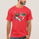 I give wanted to give this a 4 instead of a 5 because these Basic DARK T0shirts run unexpectedly SLIM or Narrow. Which is great if you do not have a potbelly, but I have a paunch. It isn't the shirt's fault that I've got a beer belly. The design and shirt itself is a quality cotton shirt. The color is more of a deep purple, but still a very pretty color. The Basic DARK T-shirts run a bit SLIMMER than the Basic Ts. The neck is a fraction narrower (or seems to be narrower) also. I'm a paunchy middle-aged woman and my neck is 12 inches (31cm) thick and the neckline fell about the same as in the photo of the man, and I had the desire to tug it a bit. So if you're a thick necked man or like loose shirts, be aware these are slimmer shirts. Once I get rid of my lockdown paunch it'll look great. The shirt washed well in cold water with no apparent bleeding. We don't have a dryer, so it hung dry. Did not shrink. Love the colors and the design. The design looks smaller on my shirt than it does on the model on-line. But still, it looks good on the shirt. The printing looks as it does on the model, just the size seems fractionally smaller. Washed garment in cold water, hung dry and design appeared unaffected.