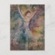 A postcard with an image of a woman caught up into the heavenlies as she praises God.