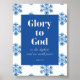 Christian Christmas poster with “Glory to God in the highest, and on earth peace” (Luke 2:14), decorated with a bold blue snowflake pattern. Perfect for holiday faith decor or festive wall art.