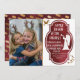 This is a wonderful modern personalized Christmas photo card with that beautiful verse from Luke 2:14. It says, 'Glory to God in the highest and on earth peace and goodwill toward men. This card features a red label with some gold accents in a dove and stars. There is a fun gold and red matching pattern on the other side of the card. Add your own photo and sentiment.