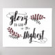 Beautiful Calligraphy Typography art with words in black, "Glory to God in the Highest."  Design is surrounded by elegant floral laurels in burgundy and light pink accents.