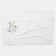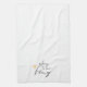 Christmas towel to use all season long that says "Glory to the Newborn King." White towel with black script lettering and yellow star.