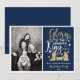 Religious Christmas Photo Card in blue and gold with wordings: "Glory to the newborn king"