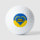 Golf balls with the flag of Ukraine, heart in the Ukrainian colours, and text saying "Glory to Ukraine" in Ukrainian