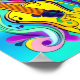 A brilliant canvas of aqua, blues, and pink has been created using guitars as the focus. Combining the bright colors and the guitars gives off a sense of adventure.