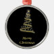 A stunning glossy gold Christmas tree shimmers brilliantly against a sleek black background, exuding elegance and holiday cheer. The words "Merry Christmas" in festive typography complete this enchanting composition, making it a perfect holiday design.