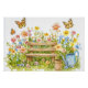 Step into a whimsical summer garden with this enchanting watercolor illustration. Delicate brushstrokes bring to life a vibrant scene of wildflowers in full bloom, fluttering butterflies, and busy buzzing bees. A rustic wooden bench invites quiet relaxation, while a charming watering can rests nearby, ready to nourish the flourishing flora. Warm sunlight filters through lush green leaves, casting a golden glow over the peaceful setting. The soft hues and airy white background enhance the dreamy, serene atmosphere, making this design perfect for nature lovers and garden enthusiasts alike.