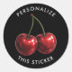 Glossy Red Cherries Black Retro Party Classic Round Sticker
