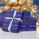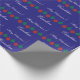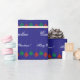 Glossy wrappingpaper with personalised name. Red and green coloured Merry Christmas lights wrapping paper for men women and kids. Classy Holiday design with colourful hanging light bulb balls and custom seasons greeting message. Personalizable with name of adult or child. Fun giftwrap with Xmas decorations. Purple or custom background colour. Elegant typography letters.